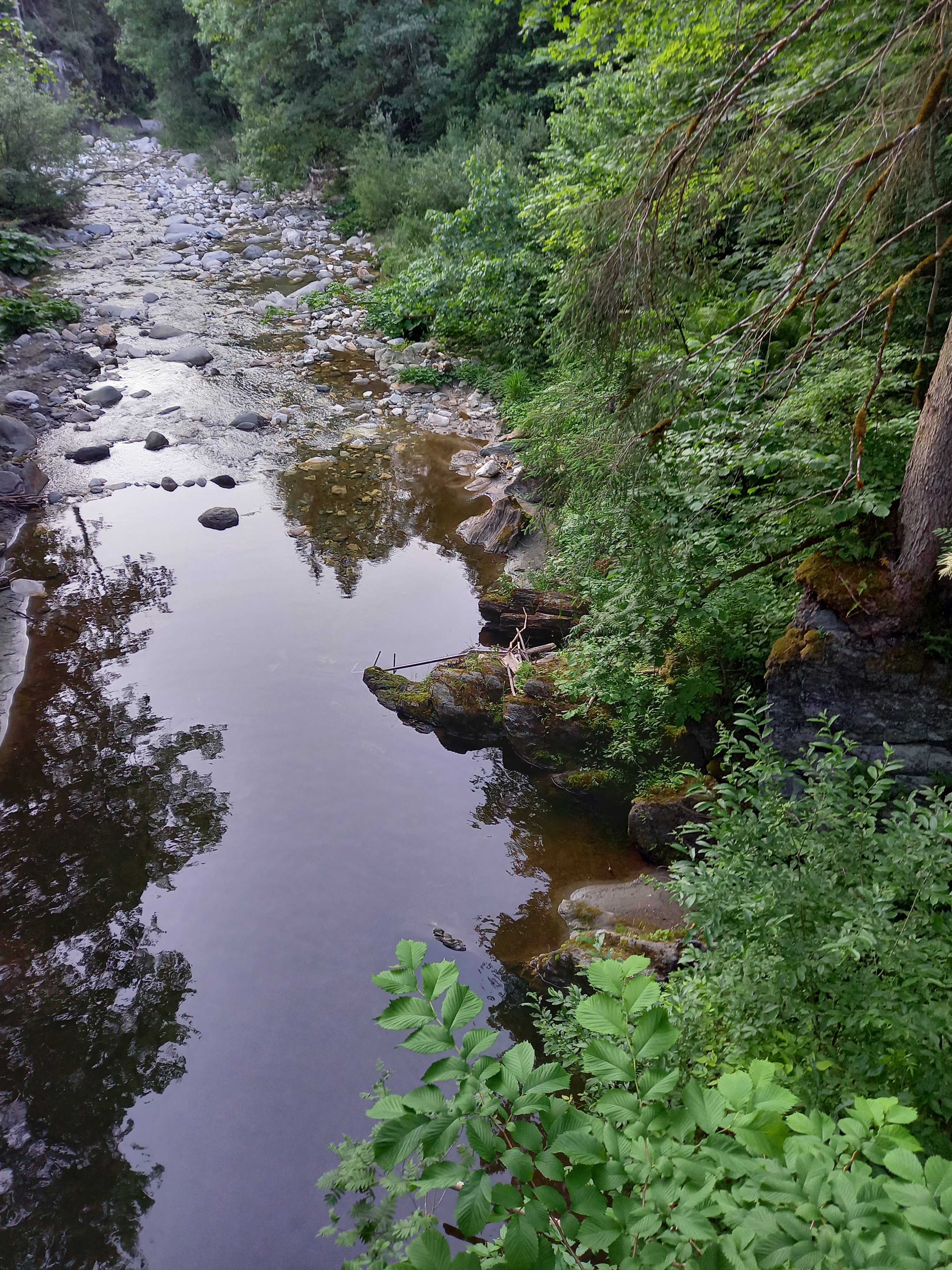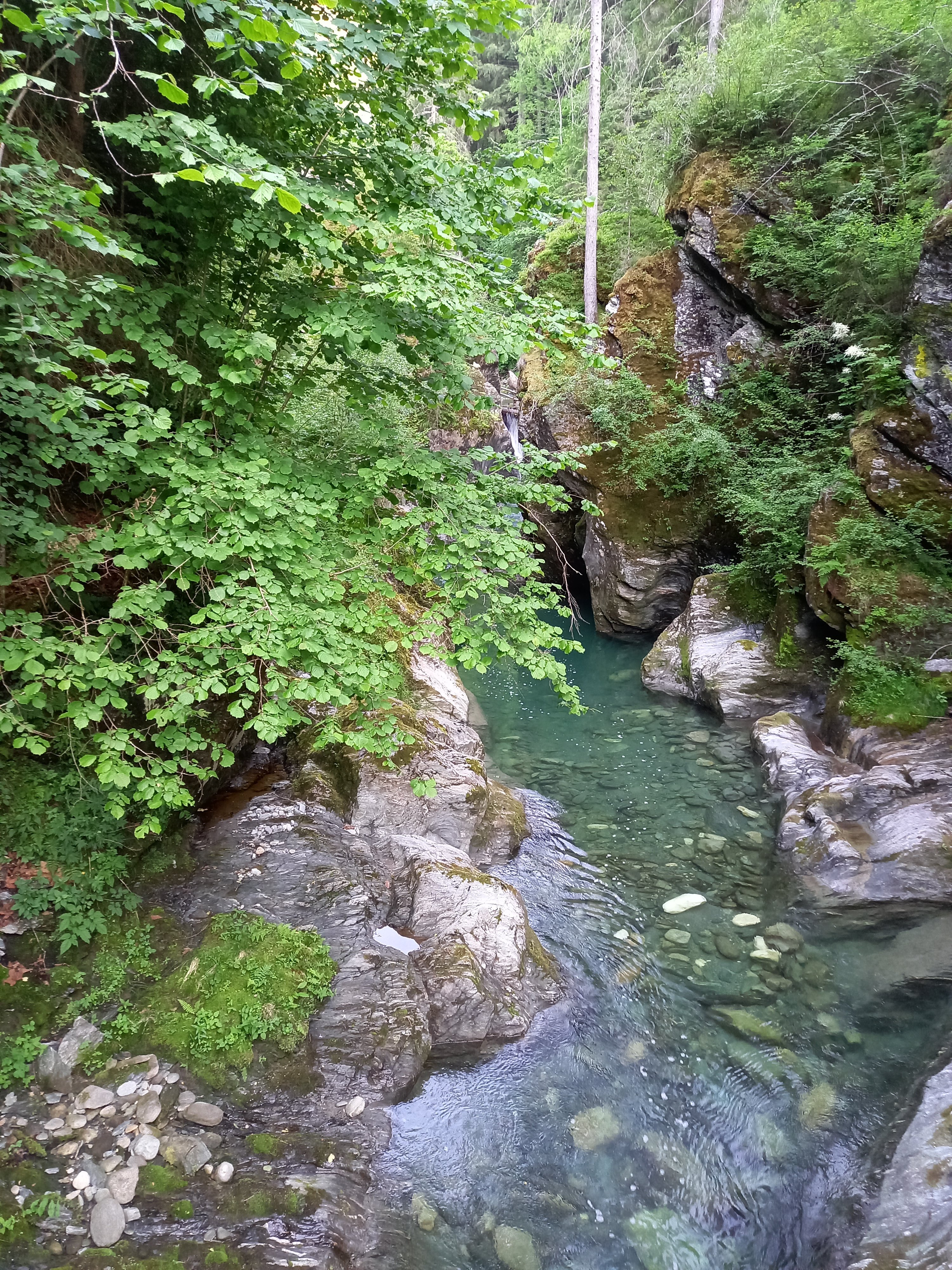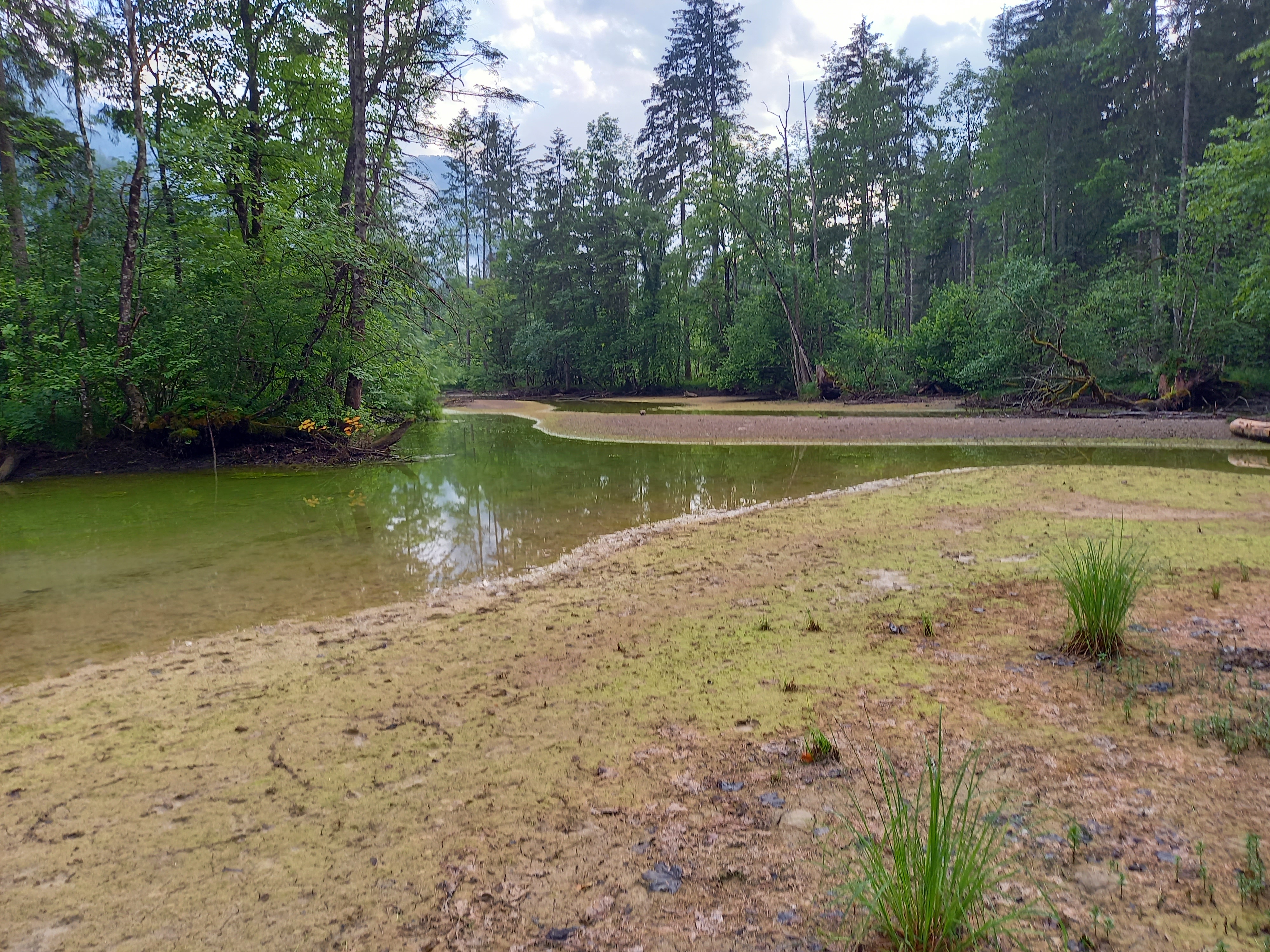 Lejjebb gurultam, és sétáltam egyet a patakparton, amit tegnap kinéztem. Mostanra melegedett az idő, de még mindig korainak éreztem kitelepedni a tópartra. Próbáltam valami kisebb túrát keresni a környéken. Így találtam a Grimming beszállása felé egy forrást. Hurrá, új úticél!