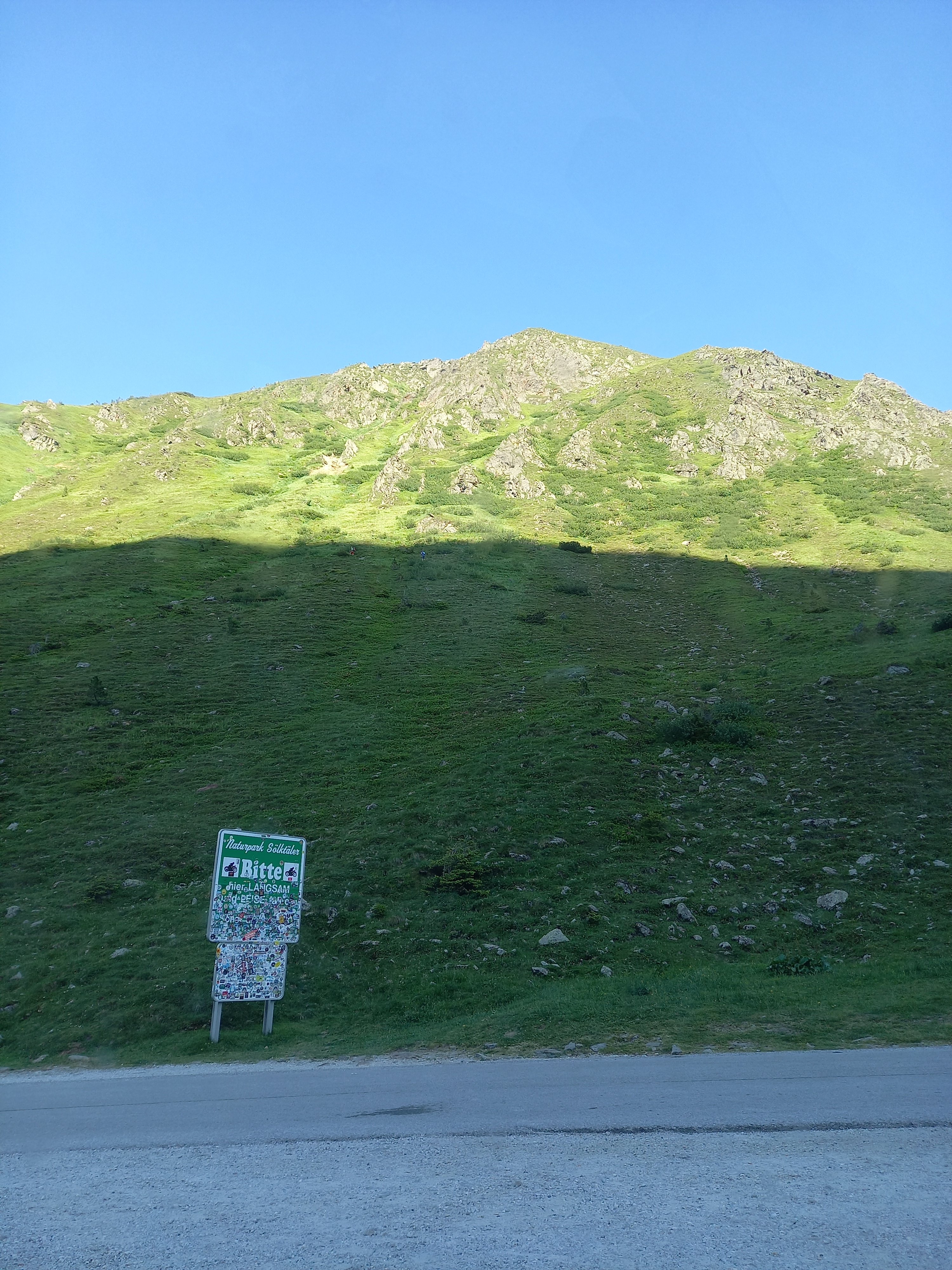 Egy másik pár lendületesen gyalogolt felfele a hágóba. Azt hittem, hogy csak az előző kanyarból indultak. De nem, ők mentek tovább is :) Legalább megmutatták az ösvényt, amit kerestem. Kb. tíz perc alatt másztak föl 180 m-t. Ezt terveztem én is naplementére, de nem volt erőm felfele indulni.