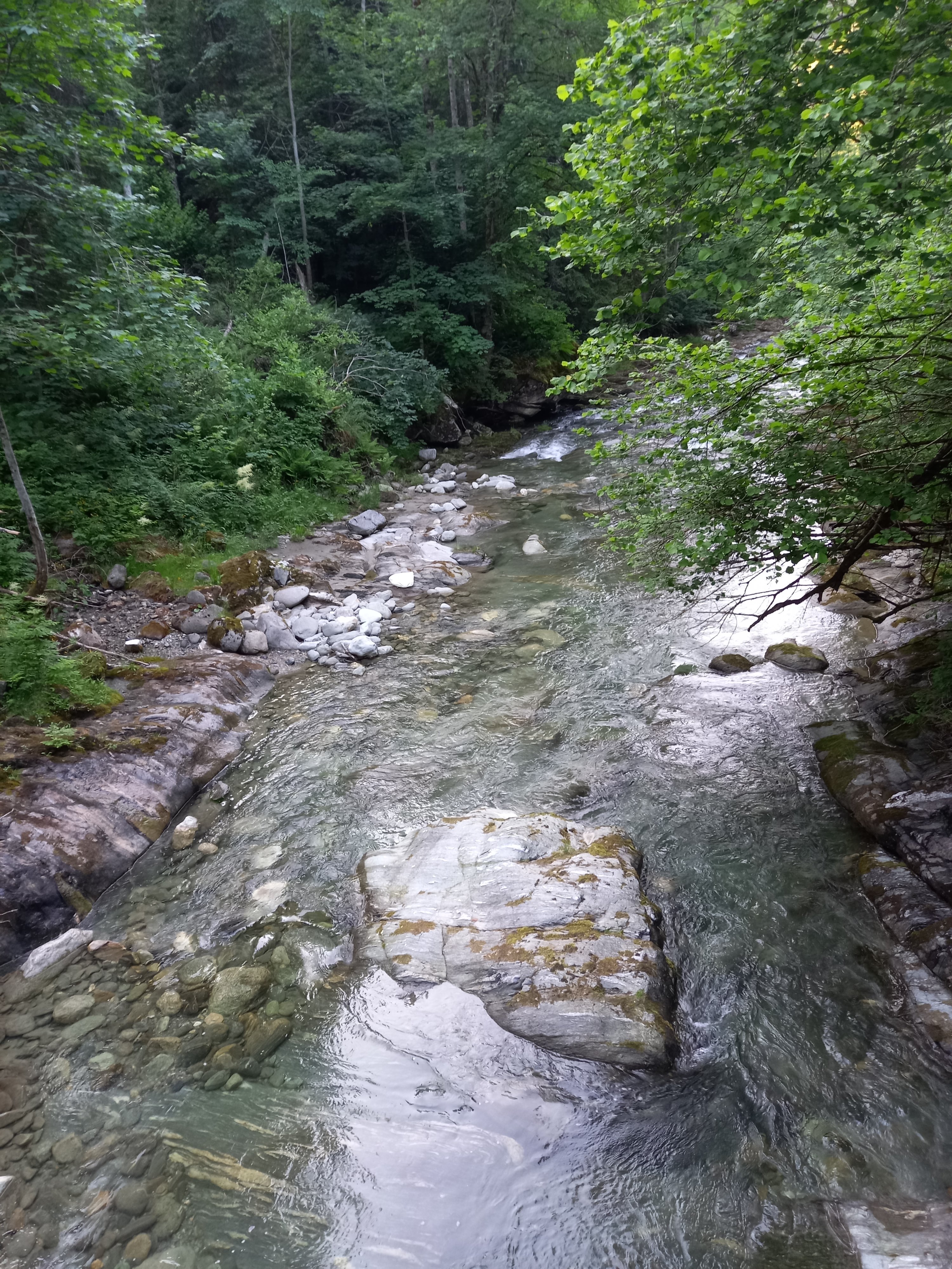 Fél óra autókázás után meg is találtam. Már útközben láttam egy távoli zivatarfelhőt, ennek ellenére volt egy autó a parkolóban. Aztán egy helyi pár is jött, de ők csak a bocikat etették meg. Iszonyú forróság volt :( Letakargattam a kocsit, és elindultam fölfele. Nagyon nehezen ment, pedig vonzott a táj :) Úgy tűnt, lassan némi kilátás is lesz. Szerencsére a patak is közeledett. Nagyon bántam, hogy az úton átfolyó noname forrásnál nem vizeztem be a hajamat. Rettenetesen meleg volt. Vagy ezt már mondtam?