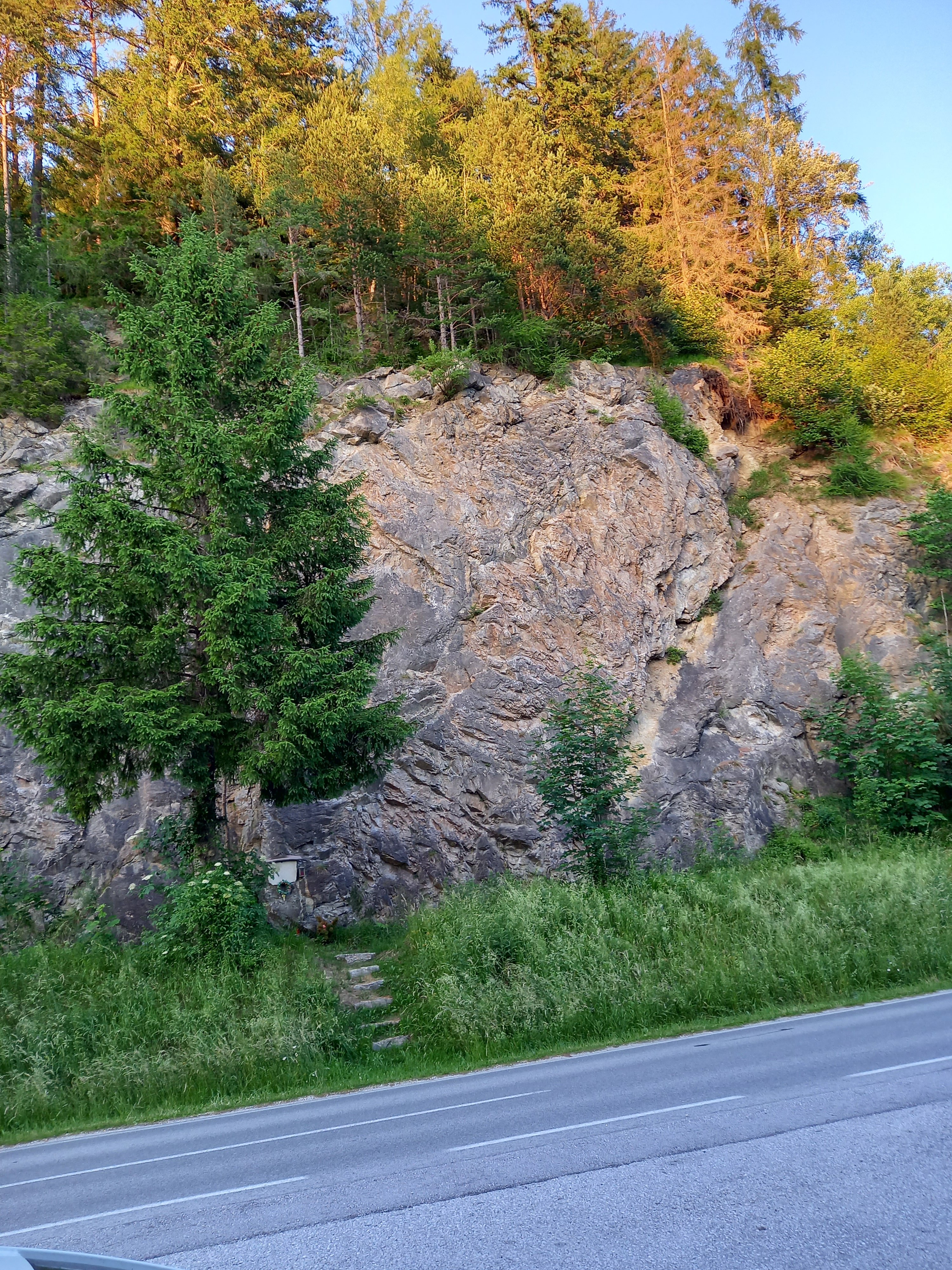 Lementem megkeresni a Strubschluchtot. Egyedül voltam a parkolóban. Már fürdőruhát se vittem, csak pár csokival és vacsival készültem. A térkép szerint egy bicikliúton kellett lemenni hozzá. Hát, én ezt elképzelni se tudom, hogy lehet ezen biciklizni, olyan meredek volt. Már lefele elfáradtam. Az első hídnál nem lehetett lejutni a patakhoz, így továbbmentem. A másodiknál se volt egyszerű, de azért megoldottam :) Hát, ha nem lettem volna egyedül, akkor beleugrok :) Gyönyörű tiszta volt a víz, és elég mély is hozzá. De a sodrástól féltem, és már hűvös is volt. Persze, felfelé nem így éreztem. Megettem a vacsimat és visszafordultam. Még tettem egy kis kitérőt a két patak összefolyásához, de itt már nagyon fáradt voltam. És még föl kell jutnom. Fölnézve még a csúcsokat sütötte a nap :) De teljesen esélytelennek tűnt, hogy én innen alig 20 perc alatt felérjek… Nem is siettem. De végül megcsináltam! Kaptam 12 perc ráadást, mert az órám Budapestre számolta a naplementét, nem a gps alapján. Így még a kocsiból láttam a naplementét a Stoderzinken fölött, aztán kicsit továbbmenve még egyszer, ezúttal a Stoderzinken és a Kammspitze között is :) Természetesen a Grimminget is megcsodáltam :) Tettem egy kört Kleinsölk felé, megnéztem a márványbányát. A Nagelecket kilencig sütötte a Nap, a Hornfeldspitzét (vagy a Hochstubofent) még tovább :)